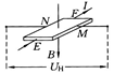 如图所示是霍尔元件的工作原理示意图,如果用d表示薄片的厚度,k为霍尔系数,对于一个霍尔元件d、k为定值,如果保持电流I恒定,则可以验证UH随B的变化情况.以下说法中正确的是 ( )![]()