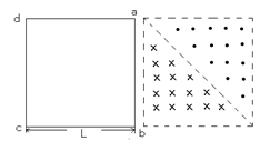 长为 L 的正方形线框abcd电阻为 R ,以速度V匀速进入边长为L的正方形区域,该区域中磁场方向如图所示,磁感应强度大小均为 B ,则线框进入过程中( )![]()