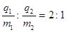 | A.q1带负电、q2带正电,荷质比之比为 |