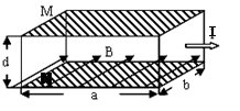 如图所示,一块长度为a、宽度为b、厚度为d的金属导体,当加有与侧面垂直的匀强磁场B,且通以图示方向的电流I时,用电压表测得导体上、下表面MN间电压为U。已知自由电子的电量为e。下列说法中正确的是![]()