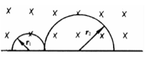 一束带电粒子以同一速度,并从同一位置进入匀强磁场,在磁场中它们的轨迹如图所示.粒子q1的轨迹半径为r1,粒子q2的轨迹半径为r2,且r2=2r1,q1、q2分别是它们的带电量,则![]()