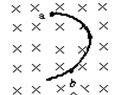 一个带电粒子,沿垂直于磁场的方向射入一匀强磁场,粒子的一段径迹如图所示,径迹上的每一小段可近似看成圆弧.由于带电粒子使沿途的空气电离,粒子的能量逐渐减小(带电量不变)从图中可以确定 ( )![]()