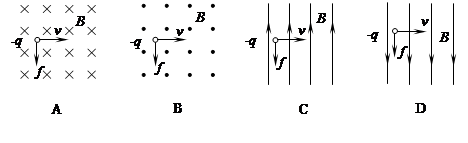 图中各带电粒子所受洛伦兹力的方向或带电粒子的带电性错误的是。