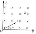 如图所示,在第一象限内有垂直纸面向里的匀强磁场,一对质量和电荷量均相等的正、负离子(不计重力)分别以相同速度沿与x轴成30°角从原点射入磁场,则正、负离子在磁场中![]()