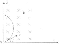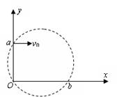 如图所示,在平面直角坐标系中有一个垂直纸面向里的圆形匀强磁场,其边界过原点O和y轴上的点a(0,L)。一质量为m、电荷量为e的电子从a点以初速度v0平行于x轴正方向射入磁场,并从x轴上的b点射出磁场,此时速度方向与x轴正方向的夹角为60°。下列说法中正确的是![]()