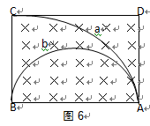 如图所示,两个相同的带电粒子,不计重力,同时从A孔沿AD方向射入一正方形空腔的匀强磁场中,它们的轨迹分别为a和b,则它们的速率和在空腔里的飞行时间关系是( )![]()
