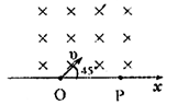 如图所示,在x轴上方存在磁感应强度为B的匀强磁场,一个电子(质量为m,电荷量为q)从x轴上的O点以速度v斜向上射入磁场中,速度方向与x轴的夹角为45°并与磁场方向垂直.电子在磁场中运动一段时间后,从x轴上的P点射出磁场. 则 ( )![]()