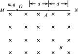 如图所示,MN是磁感应强度为B的匀强磁场的边界. 一质量为m、电荷量为q的粒子在纸面内从O点射入磁场.若粒子速度为v0,最远能落在边界上的A点.下列说法正确的有( )![]()