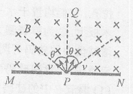 如图所示,MN是一荧光屏,当带电粒子打到荧光屏上时,荧光屏能够发光.MN的上方有磁感应强度为B的匀强磁场,磁场方向垂直纸面向里,P为屏上的一小孔,PQ与MN垂直.一群质量为m、带电荷量q的粒子(不计重力),以相同的速率v,从P点沿垂直于磁场方向射入磁场区域,其入射方向分布在以PQ为中心,夹角为2θ的范围内,不计粒子间的相互作用,以下说法正确的是( )![]()