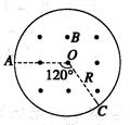 如图所示,在半径为R的圆内有一磁感应强度为B的向外的匀强磁场,一质量为m、电荷量为q的粒子(不计重力),从A点对着圆心方向垂直射入磁场,从C点飞出,则( )![]()