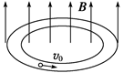 如图是一个水平放置的玻璃圆环型小槽,槽内光滑,槽宽度和深度处处相同,现将一直径略小于槽宽的带正电小球放在槽中,让它受绝缘棒打击后获得一初速υ0,与此同时,有一变化的磁场垂直穿过玻璃环形小槽外径所对应的圆面积。磁感应强度的大小跟时间成正比。其方向竖直向下。设小球在运动过程中电荷量不变,那么( )![]()