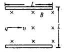 长为L,间距也为L的两平行金属板间有垂直向里的匀强磁场,如图所示,磁感应强度为B,今有质量为m、带电量为q的正离子从平行板左端中点以平行于金属板的方向射入磁场。欲使离子不打在极板上,入射离子的速度大小应满足的条件是[ ]![]()