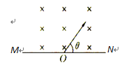 如图所示,边界MN上方存在区域足够大、方向垂直纸面向里的匀强磁场。有两个质量和电荷量均相同的正、负离子,从O点以相同的速率射入磁场中,射入方向与边界成θ=600角。若不计重力。则![]()
