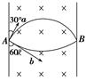 两个电荷量分别为q和-q的带电粒子分别以速度Va和Vb射入匀强磁场,两粒子的入射方向与磁场边界的夹角分别为30°和60°,磁场宽度为d,两粒子同时由A点出发,同时到达B点,如图所示,则( )![]()