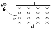 如图所示,光滑绝缘轨道ABP竖直放置,其轨道末端切线水平,在其右侧有一正交的匀强电场、磁场区域,电场竖直向上,磁场垂直纸面向里.一带电小球从轨道上的A点由静止滑下,经P点进入场区后,恰好沿水平方向做直线运动.则可判定( )![]()