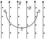 如图所示,真空中存在着竖直向上的匀强电场和垂直纸面向外的匀强磁场,一带电液滴从静止开始自a沿曲线acb运动到b点时,速度为零,c是轨迹的最低点。以下说法中正确的是 ( )![]()