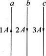 在同一平面上有a、b、c三根等间距平行放置的长直导线,依次载有电流强度为1A、2A和3A的电流,各电流的方向如图所示。导线b所受的合力方向向_____。