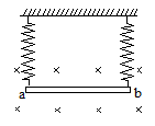 粗细均匀的直导线ab的两端悬挂在两根相同的弹簧下边,ab恰好处在水平位置(如图所示).已知ab的质量为m=10 g,长度L=60 cm,沿水平方向与ab垂直的匀强磁场的磁感应强度B=0.4T.(1)要使两根弹簧能处在自然状态,既不被拉长,也不被压缩,ab中应沿什么方向、通过多大的电流?(2)当导线中有方向从a到b、大小为0.2 A的电流通过时,两根弹簧均被拉长了Δx=1 mm,求该弹簧的劲度系数.