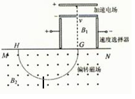 (14分)如图甲是质谱仪的工作原理示意图。图中的A容器中的正离子从狭缝S1以很小的速度进入电压为U的加速电场区(初速度不计)加速后,再通过狭缝S2从小孔G垂直于MN射入偏转磁场,该偏转磁场是以直线MN为上边界、方向垂直于纸面向外的匀强磁场,磁感应强度为B,离子最终到达MN上的H点(图中未画出),测得G、H间的距离为d,粒子的重力可忽略不计。试求: