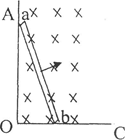 如图所示,AOC是光滑的直角金属导轨,AO沿竖直方向,OC沿水平方向,ab是一根金属直棒,如图立在导轨上,b端靠近0点。它从静止开始在重力作用下运动,运动过程中b端始终在OC上,a端始终在A0上,直到ab完全落在OC上。整个装置放在一匀强磁场中,磁场方向垂直纸面向里,则ab棒在运动过程中( )![]()