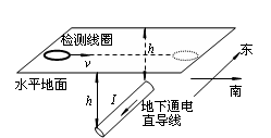 如图所示,在水平地面下有一条沿东西方向铺设的水平直导线,导线中通有自东向西的稳定且强度较大的直流电流。现用一闭合的检测线圈(线圈中串有灵敏电流计,图中未画出)检测此通电直导线的位置,若不考虑地磁场的影响,在检测线圈位于水平面内,从距直导线很远处由北向南沿水平地面通过导线的上方并移至距直导线很远处的过程中,俯视检测线圈,其中的感应电流的方向是( )![]()