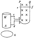 如图所示,P、Q是两根竖直且足够长的金属杆,处在垂直纸面向里的匀强磁场B中,MN是一个螺线管,它的绕线方法没有画出,P、Q的输出端a、b和MN的输入端d、d之间用导线相连,A是在MN的正下方水平放置在地面上的金属圆环.现将金属棒ef 由静止释放,在下滑过 程中始终与P、Q棒良好接触且无摩擦.在金属棒释放后下列说法正确的是()![]()