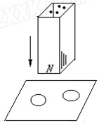 如图所示,光滑的水平桌面上放着两个完全相同的环形金属圈,原来均静止、且彼此绝缘。当一条形磁铁的N极由上向它们运动时,两线圈将( )![]()