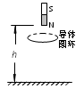 如图所示,在一固定水平放置的闭合导体圆环上方,有一条形磁铁,从离地面高h处,由静止开始下落,最后落在水平地面上。磁铁下落过程中始终保持竖直方向,并从圆环中心穿过圆环,而不与圆环接触。若不计空气阻力,重力加速度为g,下列说法中正确的是( )![]()