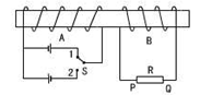 如图,在同一铁心上绕着两个线圈,单刀双掷开关原来接在1位置,现在它从1打向2,试判断此过程中,通过R的电流方向是![]()
