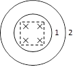 虚线框内有匀强磁场,1和2为垂直磁场方向放置的两个圆环,分别用Φ1和Φ2表示穿过两环的磁通量,则有:![]()