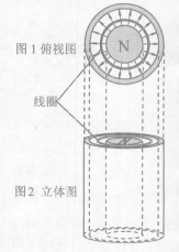 一个足够长的竖直放置的磁铁结构如图所示。在图1中磁铁的两个磁极分别为同心的圆形和圆环形。在两极之间的缝隙中,存在辐射状的磁场,磁场方向水平向外,某点的磁感应强度大小与该点到磁极中心轴的距离成反比。用横截面积一定的细金属丝制成的圆形单匝线圈,从某高度被无初速释放,在磁极缝隙间下落的过程中,线圈平面始终水平且保持与磁极共轴。线圈被释放后 ( )![]()