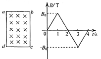 矩形导线框abcd固定在匀强磁场中,磁感线的方向与导线框所在平面垂直,规定磁场的正方向垂直低面向里,磁感应强度B随时间变化的规律如图所示.若规定顺时针方向为感应电流I的正方向,下列各图中正确的是( )![]()