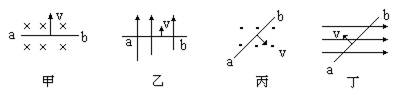 闭合电路的一部分导线ab处于匀强磁场中,图1中各情况下导线都在纸面内运动,那么下列判断中正确的是( )![]()