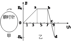 一匀强磁场,磁场方向垂直纸面,规定向里的方向为正,在磁场中有一细金属圆环,线圈位于纸面内,如图甲所示.现令磁感应强度值B随时间t变化,先按图乙所示的0a图线变化,后来又按bc和cd变化,令E1、E2、E3分别表示这三段变化过程中感应电动势的大小,I1、I2、I3分别表示对应的感应电流( )![]()