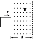 边长为L的正方形金属框以垂直边界匀速u穿过方向如图的有界匀强磁场区域。已知磁场区域的宽度为d(d>L)。则线框进入磁场的过程和从磁场另一侧穿出的过程相比较![]()
