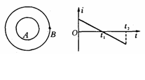 如图所示,两个闭合圆形线圈A, B的圆心重合,放在同一个水平面内,线圈B中通以如图所示的交变电流,设t=0时电流沿逆时针方向(图中箭头所示).对于线圈A在t1~t2时间内的下列说法中正确的是![]()