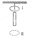 如图,一质量为m的条形磁铁用细线悬挂在天花板上,细线从一水平金属环中穿过。现将环从位置I释放,环经过磁铁到达位置II。设环经过磁铁上端和下端附近时细线的张力分别为T1和T2,重力加速度大小为g,则![]()