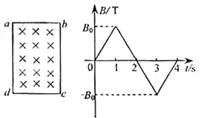 矩形导线框abcd固定在匀强磁场中,磁感线的方向与导线框所在平面垂直,规定磁场的正方向垂直低面向里,磁感应强度B随时间变化的规律如图所示.若规定顺时针方向为感应电流I的正方向,下列各图中正确的是( )![]()