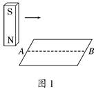 如图1所示,粗糙水平桌面上有一质量为m的铜质矩形线圈.当一竖直放置的条形磁铁从线圈中线AB正上方等高快速经过时,若线圈始终不动,则关于线圈受到的支持力FN及在水平方向运动趋势的正确判断是 ( )![]()