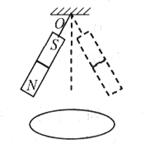 如图所示,条形磁铁用细线悬挂在O点。O点正下方固定一个水平放置的铝线圈。让磁铁在同一竖直面内摆动。条形磁铁在完整摆动一次的过程中,下列说法中正确的是![]()