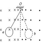 如图,磁场垂直于纸面,磁感应强度在竖直方向均匀分布,水平方向非均匀分布。一铜制圆环用丝线悬挂于O点,将圆环拉至位置a 后无初速释放,在圆环从a 摆向b的过程中( )![]()