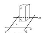 如图所示,M、N为水平放置的两根固定且平行的金属导轨,两根导体棒P、Q垂直于导轨放置并形成一个闭合回路,将闭合回路正上方的条形磁铁从高处下落时:( )![]()