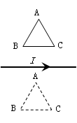 如图所示,一个闭合三角形导线框ABC位于竖直平面内,其下方(略靠前)固定一根与线框平面平行的水平直导线,导线中通以图示方向的恒定电流。释放线框,它由实线位置下落到虚线位置未发生转动,在此过程中:![]()