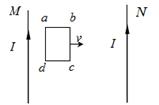 如图所示,在两根平行长直导线M、N中,通入同方向同大小的电流,导线框abcd和两导线在同一平面内,线框沿着与两导线垂直的方向,自左向右在两导线间匀速移动,在移动过程中,线框中感应电流的方向为![]()