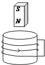 如图,闭合线圈上方有一竖直放置的条形磁铁,磁铁的N极朝下。当磁铁向下运动时(但未插入线圈内部)( )![]()