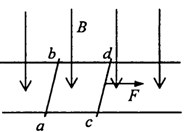 如图所示,两足够长平行金属导轨固定在水平面上,匀强磁场方向垂直导轨平面向下,金属棒ab、cd与导轨构成闭合回路且都可沿导轨无摩擦滑动,两金属棒ab、cd的质量之比为2 :1,用一沿导轨方向的恒力F水平向右拉金属棒cd,经过足够长时间以后 ( )![]()