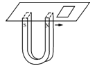 如图所示,矩形闭合线圈放置在水平薄板上,有一块蹄形磁铁如图所示置于平板的正下方(磁极间距略大于矩形线圈的宽度)当磁铁匀速向右通过线圈时,线圈仍静止不动,那么线圈受到薄板的摩擦力方向是 ( )![]()