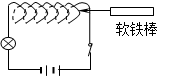 如图所示,闭合电路中一定长度的螺线管可自由伸缩,通电时灯泡有一定亮度,若将一软铁棒从螺线管一端迅速插入螺线管内,则在插入过程中( )![]()