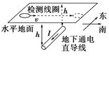 如图所示,在水平地面下埋着一条沿东西方向通有恒定电流的水平直导线.现用一串有灵敏电流计的闭合圆形检测线圈检测此通电直导线的位置.若不考虑地磁场的影响,检测线圈在水平面内,从距直导线很远处的北边移至距直导线很远处的南边的过程中,俯视检测线圈.下列说法正确的是( )![]()