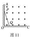 .如图所示,AOC是光滑的金属轨道,AO沿竖直方向,OC沿水平方向,PQ是一根金属直杆如图所示立在导轨上,直杆从图示位置由静止开始在重力作用下运动,运动过程中Q端始终在OC上,空间存在着垂直于纸面向外的匀强磁场,则在PQ杆滑动的过程中,下列判断正确的是 ( )